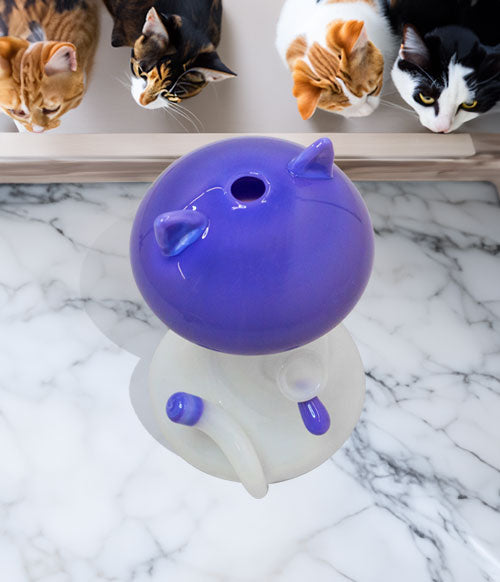 Add some feline fun to your glass collection by picking up the Sakibomb Shroom Kitty Mini Rig! These handcrafted borosilicate creations are absolutely oozing with individual style and have a completely unique combination of both mushroom and kitty aesthetics. The Shroomy Kitty Rig comes with a dedicated bowl that matches its purple and white color scheme and is more than capable of handling any dry herbs your customers can throw at it. So pick up some of these amazing works of art, by ordering Sakibomb Shroom Kitty Mini Rigs for your shop today!
