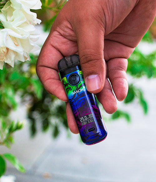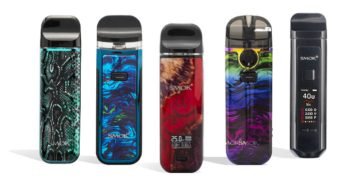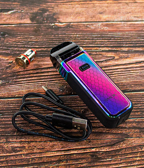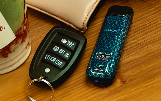 Additionally, it incorporates a wattage output range of 5W to 30W, a resistant range of 0.5ohm to 3.0ohm, and 4 output modes: Min, Soft, Norm, and Hard. The SMOK PRIV N19 30W enables a single intuitive adjustment and firing button as well as bright LED battery life indicators that let the user know how much battery life they have left. Paired with the SMOK Vape Pen Nord 19 Tank, the tank utilizes a 2mL juice capacity, and a threaded top fill system with two fill ports which reduces leakage and positive pressure during refills. Located at the base of the tank is a triple-slotted airflow control ring. This results in airflow within the internal structure to generate densely, potent flavored vapor clouds.