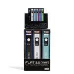 La Flat Mini 2.0 presenta mejoras en la calidad de vida, incluida la compatibilidad universal con cartuchos roscados 510 de cualquier tamaño, una pantalla OLED de alta calidad y carga rápida USB tipo C para que aprovechar al máximo estas baterías sea tan fácil como encenderlas. El paquete de 12 Flat Mini 2.0 viene en una caja lista para el punto de venta que muestra la gama incluida de 6 colores diferentes (2 de cada uno incluidos) como verde, azul verdoso y más.